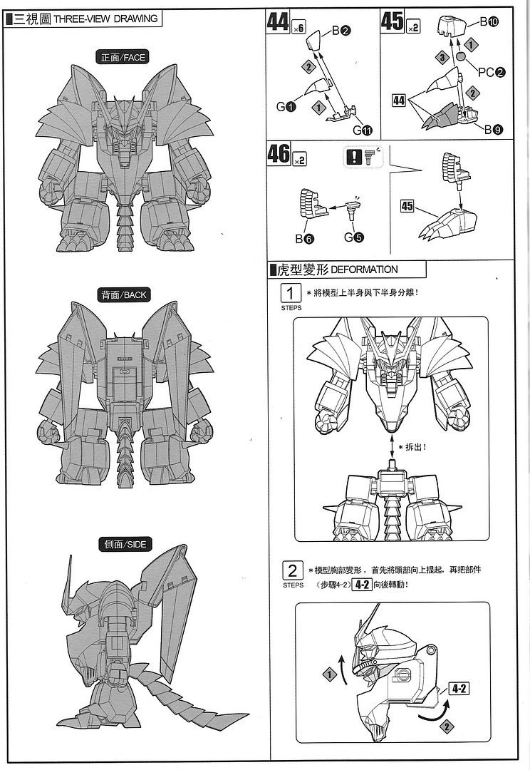 การต่อ เนื่องจากเป็นหุ่นแปลงร่าง กลไกส่วนลำตัวค่อนข้างยุ่งยากพอสมควร แต่แขนกับขาไม่มีอะไรมาก