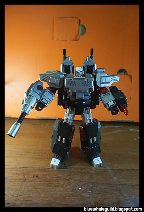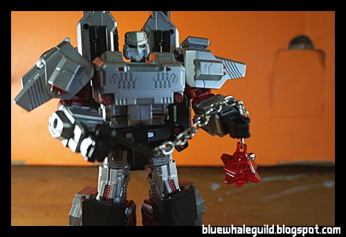 ค่ายที่ทำเม็กตัวนี้ก็คือ Megasteel ครับ ซึ่งเป็นค่ายใหม่เพิ่งมีผลงานคือ Not Blaster แต่ก็ทำงานออกมาได้สวยดีและที่เน้นๆ ก็ตามชื่อค่ายเลยก็คือ ชิ้นส่วน "เหล็ก" ครับ โดยเจ้าเม็กกะทรอนของค่ายนี้ก็มีชิ้นส่วนเหล็กเยอะจนหนัก 400 กรัม ค่าส่งบานตะไทกันเลยทีเดียว