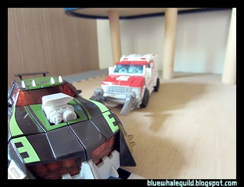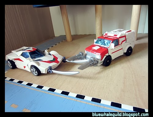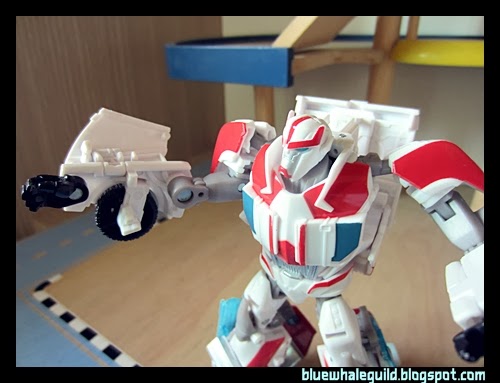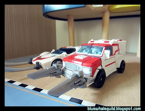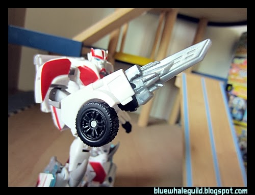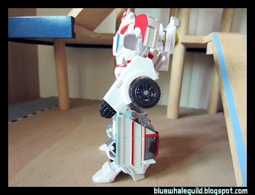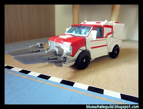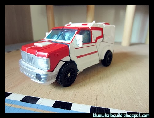 Ratchet ของภาคไพรม์ตัวนี้ออกมาในชุด RID ก็นานพอสมควรแล้ว ผมได้มาจากเซ็นทรัลปิ่นเกล้าตอนมีโปรฯ ซื้อหนึ่งแถมหนึ่ง ทีแรกไม่ได้คิดว่าจะเก็บเพราะตัวเล็กแล้วก็ลงสีมาน้อยเหลือเกิน (แต่ตัวนี้ของ Takara หนักกว่าเพราะเล่นขาวจ๋องมาทั้งตัวเลย) แต่พอได้มาคุณหมอเขาก็มีดีเยอะเหมือนกันครับ