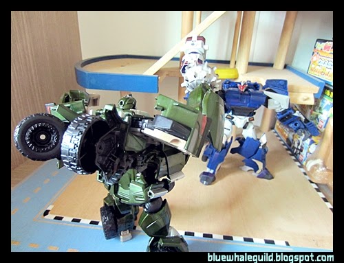 ใน Transformers ภาค Prime ตัวละครที่ชื่อ Breakdown นััน จัดได้ว่าน่าสงสารมากๆ ตัวหนึ่ง คือเป็นคนที่ทั้งซื่อสัตย์ในหน้าที่และมีคุณธรรม ทั้งๆ ที่อยู่ฝ่าย Decepticons แต่เขาก็เคยช่วยเหลือ Autobots ด้วย เมื่อเขาคิดว่าสิ่งที่เขาทำมันถูกต้องแล้ว แต่กลับโชคร้ายอยู่ตลอด ทั้งต้องมาตาบอด 1 ข้าง และ... คือสรุปว่าผมชอบ Breakdown มาตั้งแต่ดูอนิเมแล้วครับ 555+ ส่วนการได้ของเล่นมาต้องถือว่าโชคดีมากครับ เพราะ Breakdown มีแต่ Takara ที่ทำออกมาขาย ราคาตลาดโลก(?) จึงไปไกลแล้ว แต่เพื่อนในกลุ่ม Thai Energon ก็นำมาขายในราคาที่เหมือนให้เปล่าครับ งงเลย แต่ก็ดีนะ 555+