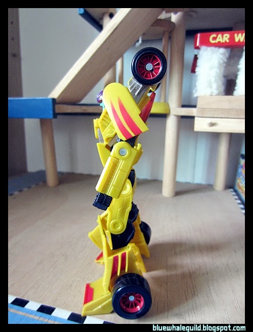 ถ้าตาม G1 ต้องมี 6 ล้อ แต่ของเล่นไม่ทำอะไรเพิ่มเลยก็เลยมี 4 ล้อ