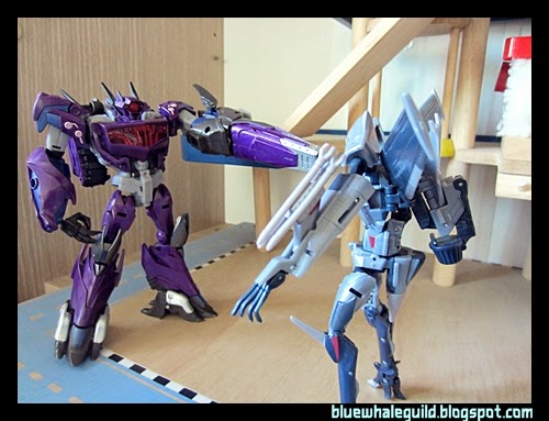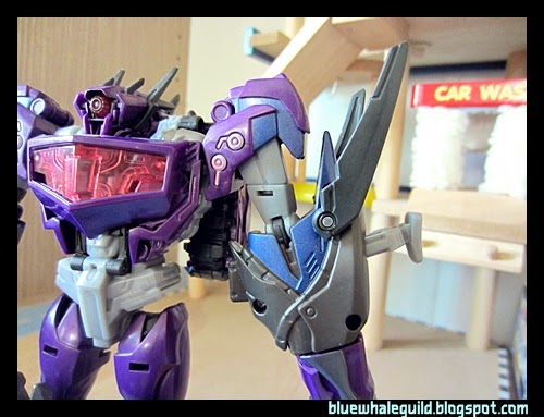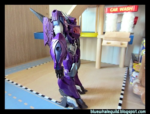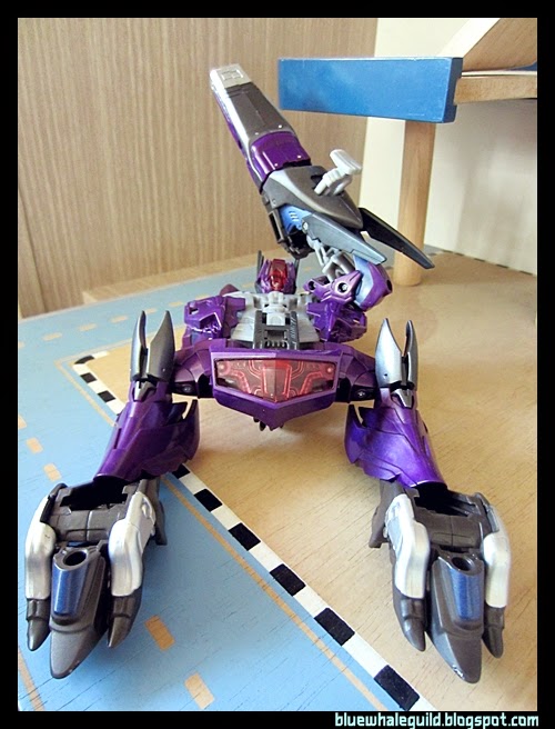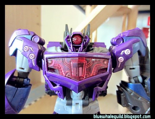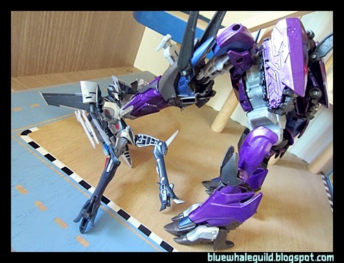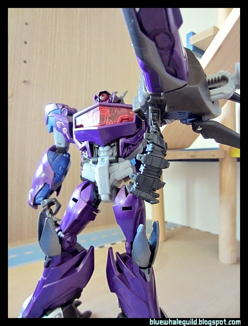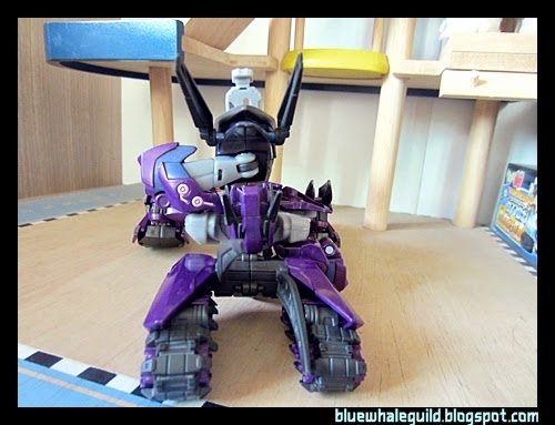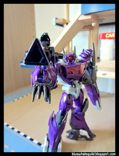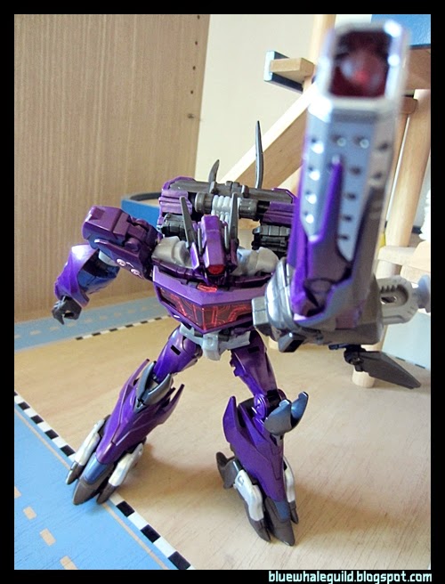 Shockwave ตัวนี้ที่จริงผมได้มาเกือบปีแล้ว ที่จำได้เพราะสั่งมาตั้งแต่ยังทำงานอยู่ที่เก่า แล้วผมออกเมื่อมิถุนายนปี 56 แต่ก็เพิ่งได้มารีวิว เป็นงานของ Takara ครับสีจะแตกต่างจาก Hasbro คือจะเงาๆ ออกเมทัลลิคกว่า ถ้าใครอยากได้ของฮาสโบรก็ตอนนี้ตามห้างลด 50% ครับ เหลือเพียบเลยแต่ตัวอื่นจะไปเกือบหมดแล้ว ทั้งๆ ที่ตัวนี้ผมว่าโอเคอยู่นะ