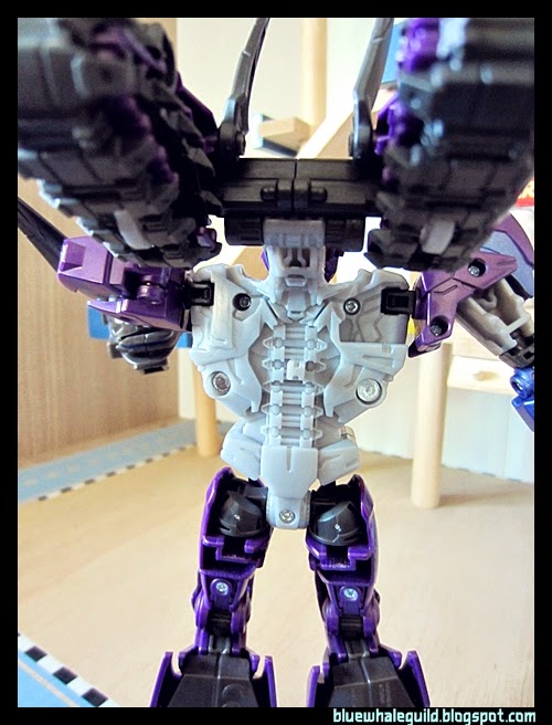 ชิ้นใสตรงหน้าอกเวลาแปลงให้ล็อกแค่ด้านบนพอ ไม่ต้องพยายามดึงมันลงมาอีก มันมีที่ล็อกด้านบนอยู่แล้ว เล็กๆ หลุดง่ายแต่ให้จบแค่นั้นเลย