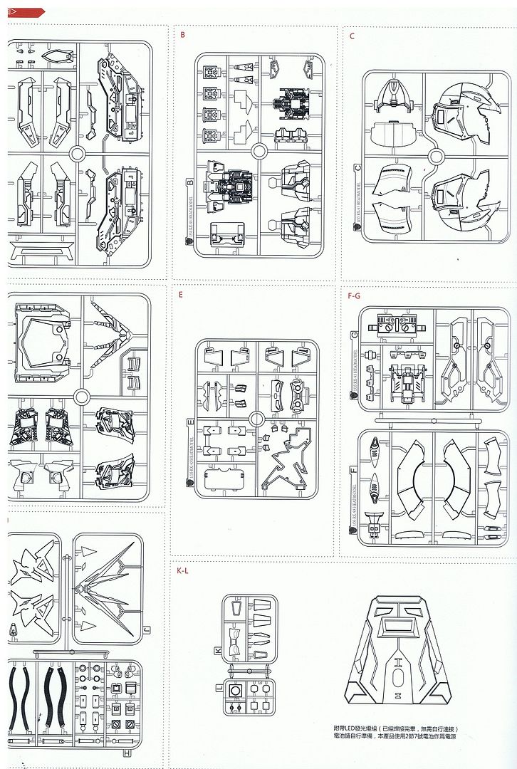 ลังถ่านให้มาค่อนข้างดี  แบ่งชิ้นเป้นสองชิ้นคือรังถ่าน + สวิตซ์ และตัวหลอดไฟ สำหรับต่อส่วนหัว