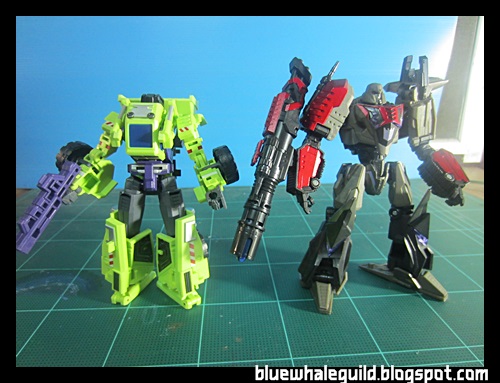 ที่รีวิวนี่ตัวเล็กหรือตัวใหญ่หรือครับเมื่อก่อนเคยมี ver. Japan รุ่นเก่าที่เป็นสีส้ม ขายแยกทีละตัว เก็บตั้งค์ซื้อทีละตัว ซื้อได้ 5 กล่อง แขนขวาดันหาซื้อไม่ได้ รวมร่างแล้วเป็นหุ่นแขนด้วน เซ็งเลยแต่รุ่นนั้นตอนรวมร่าง ขยับได้แค่ยกแขนกับงอศอก ขาติดตายเพราะเอาปีกของรถดัมพ์มาทำต้นขา รูปร่างตลกมาก