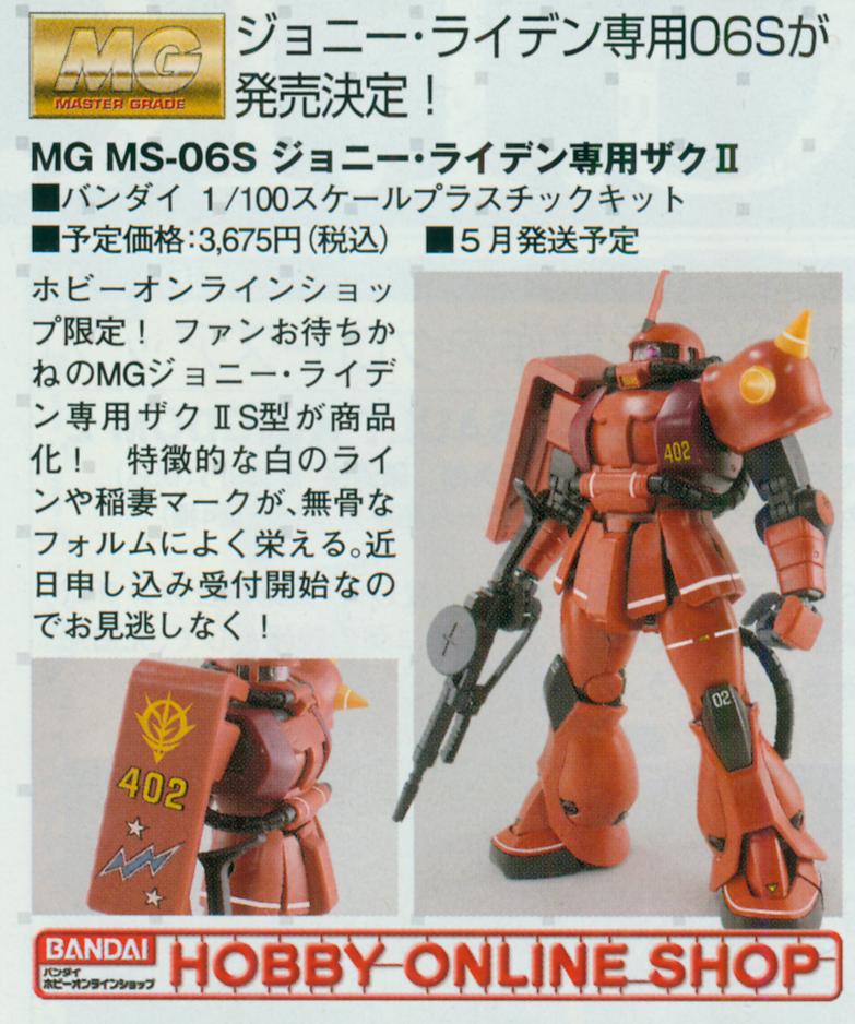 P-Bandai Hobby Online Shop Exclusive: MG 1/100 MSV-R MS-06S Zaku II Johnny Ridden Custom (Release Date May 2013, Price: 3,675 yen)