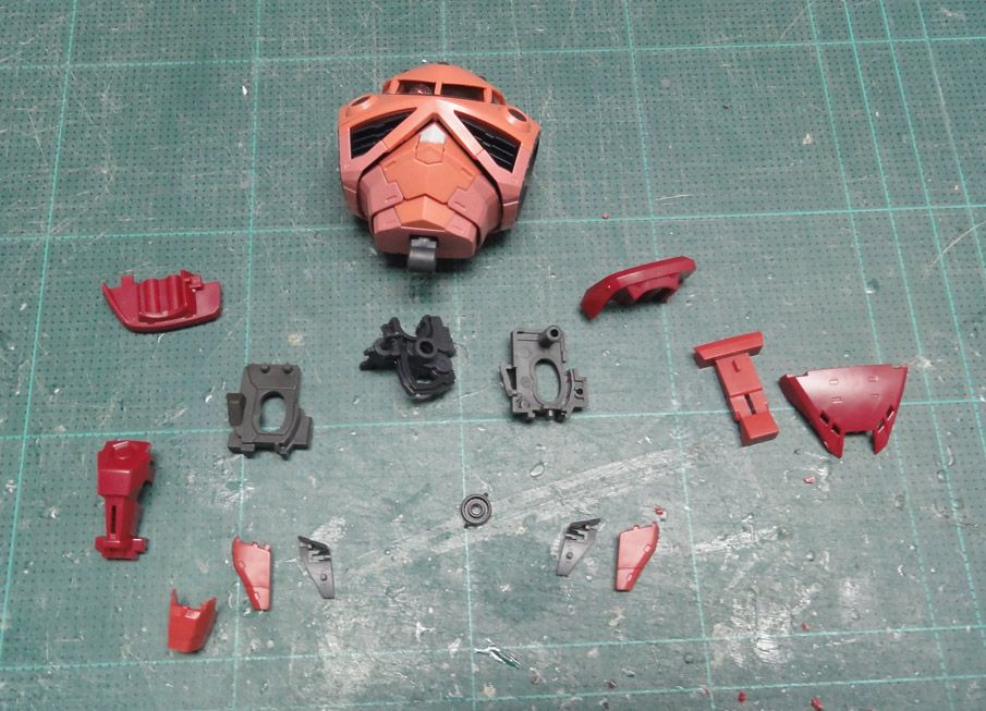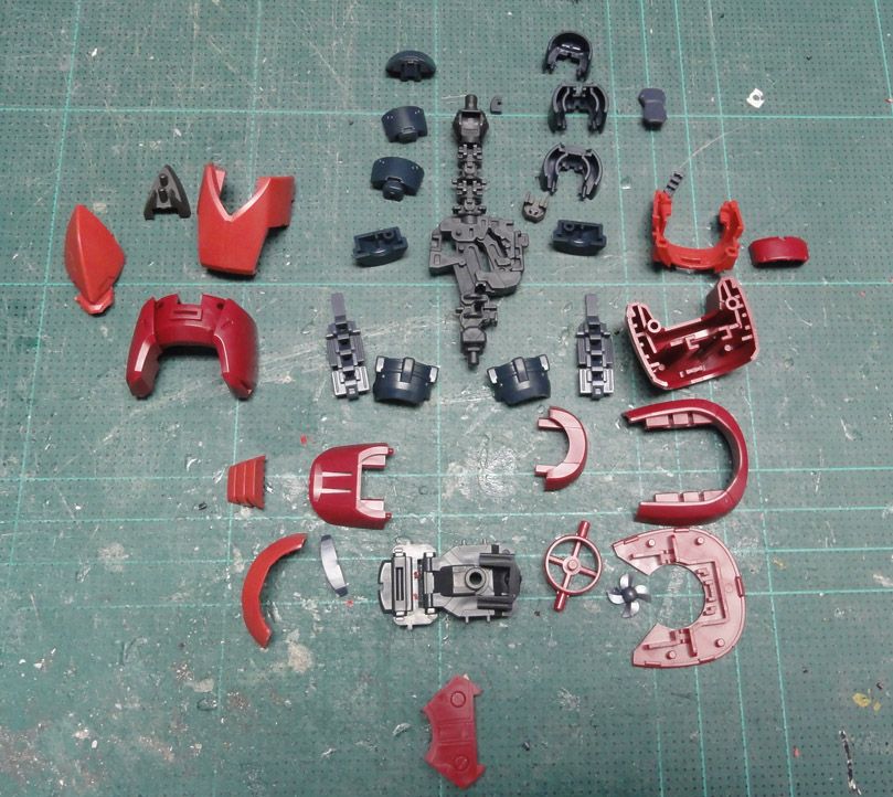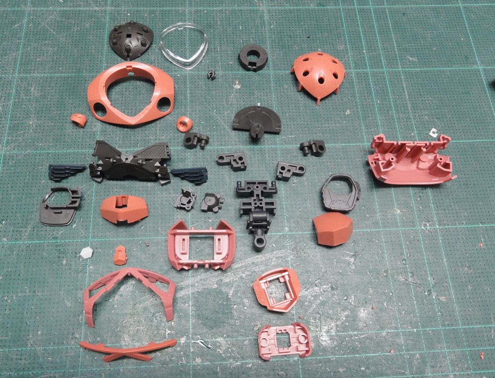 ตัวโมก็ตามฉบับ RG ชิ้นส่วนแยกย่อยเยอะ ชิ้นเล็กๆก็เยอะ  แต่ไม่ได้เล็กจนลำบากตอนต่อแบบ Exia ที่เข้าขั้นต่อไปกุมขมับไป สำหรับตัวสก็กนี่ต่อได้เรื่อยๆ