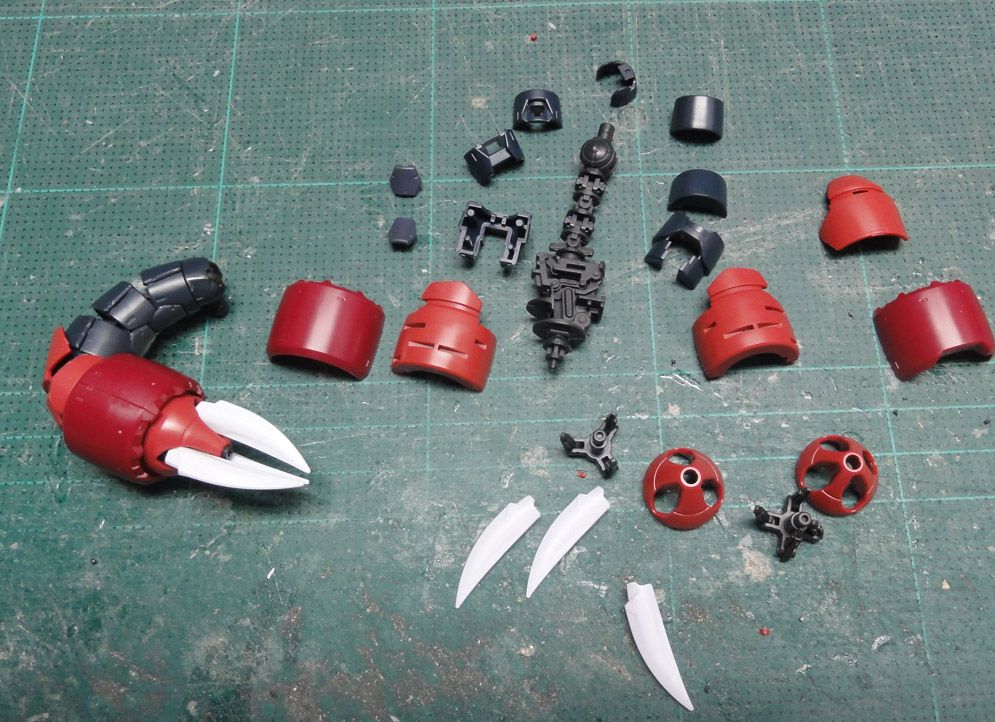 แขนกลเป้นข้อต่อแบบละเอียด ขยับซ้่ายขวา ติดทับกันไปมา แต่พอติดเกราะแล้วจุดขยับออกมาดูไม่ต่างจาก HGUC ซักเท่าใหร่เฮะ
