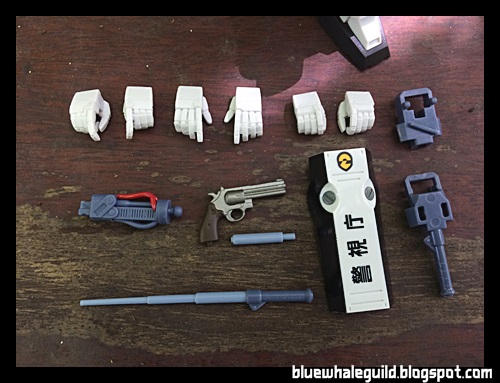 มือทั้งหมด 8 คู่ (ใส่ที่ตัวแล้ว 2) พาร์ทยืดแขน โล่ พาร์ทติดโล่ ปืน กระบองสั้นยาว
