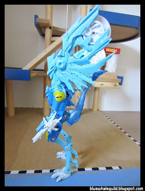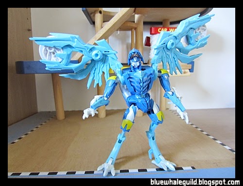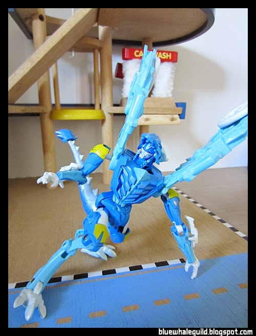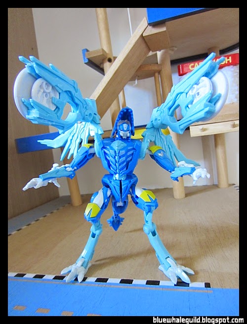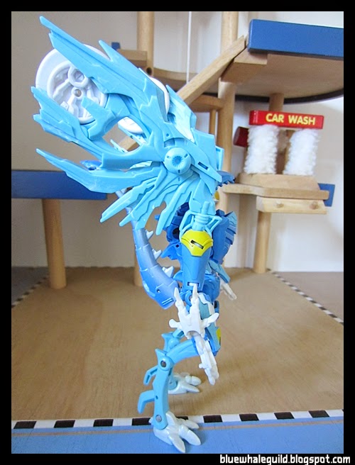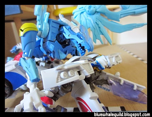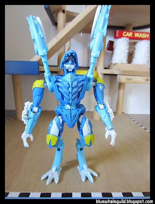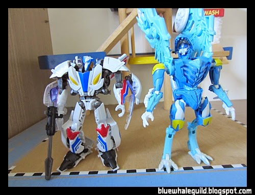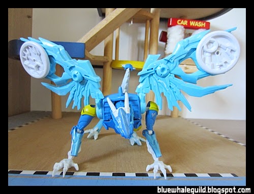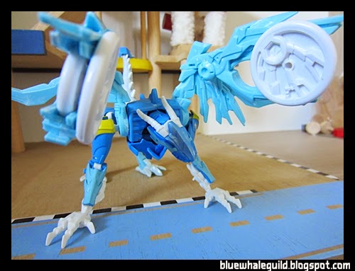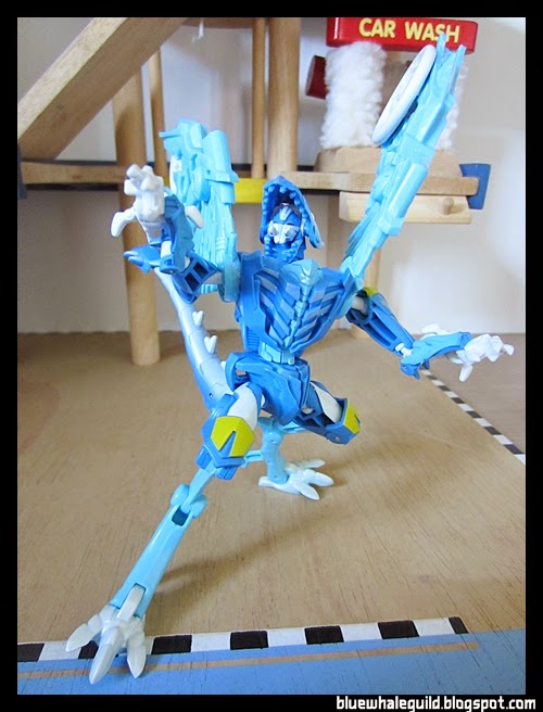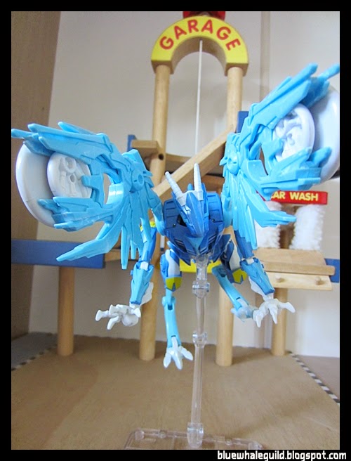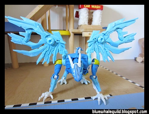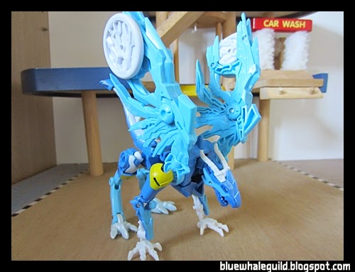 ตัวนี้จัดมาเหมือนกันเลยแต่ไม่ค่อยชอบร่าง robot แบบ original เท่าไหร่เพราะเอาปีกไว้ข้างบนแล้วดูไม่ค่อยสวย แถมยืนยากเลยเอาลงมาแนบไว้ข้างตัว ดูแล้วเหมือนผ้าคลุม robe อะไรอย่างนี้แทนยืนมั่นคงดีด้วยถ้าจะโพสท่าใช้ปืน disc แล้วค่อยยกมาพาดบ่าแต่ร่างบีสต์โหมดนี่เท่สุดๆ อยู่แล้ว