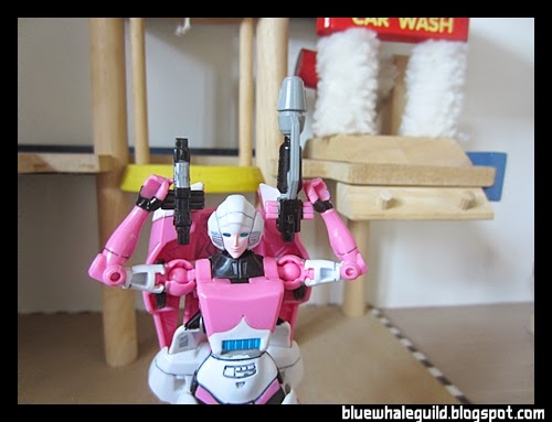มีสาวมาลัดคิวอีกแล้ว พวกมังกรที่ยังไม่ได้รีวิวคงบ่นแย่ ไม่เป็นไรไม่สน 5555 สำหรับ Arcee ตัวนี้ก็เป็นหนึ่งในแก๊ง 3 สาว Fembots ที่ออกมาในเวฟเดียวกันนะครับ (ตามเนื้อเรื่อง Fembots มีมากกว่า 3 แหละ แต่ของเล่นเพิ่งทำออกมาแค่สาม ได้แก่ Arcee, Winblade และ Chromia) ส่วนตัวแล้วผมอยากได้ Windblade ที่เป็นคาแรกเตอร์ที่แฟนๆ โหวตให้ทำออกมามากที่สุด แต่ก็มีโอกาสได้ Arcee มาเป็นตัวแรก ซึ่งเจ้าของเดิมได้ทำสีมาแล้วบางส่วนนะครับ ทำให้น้อง Arcee ของผมค่อนข้างจะแตกต่างจาก Arcee งานฮาสโบรที่มีจำหน่ายตามท้องตลาด (ตลาดต่างประเทศนะ ห้างบ้านเรายังไม่ลง)