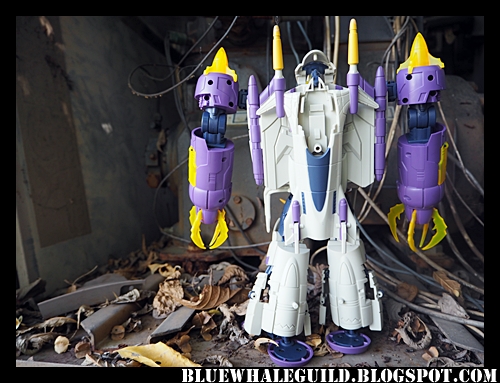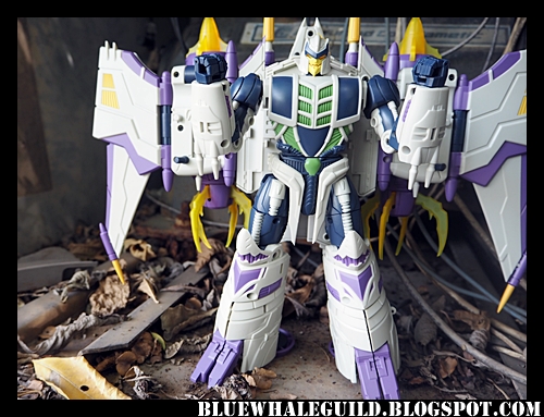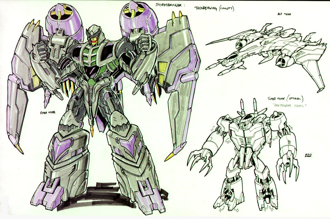 ร่างนี้ออกแบบโดยอ้างอิงจากสมัย G1 ที่ Thunderwing เป็น Pretender ต้องซ่อนตัวอยู่ในเกราะ แต่พอเป็นภาคคอมิคสมัยใหม่ เลยให้นำปีกมาหุ้มตัวกลายเป็นเกราะเสียเลย ซึ่งผมว่าคิดได้ดี ออกแบบได้ดี