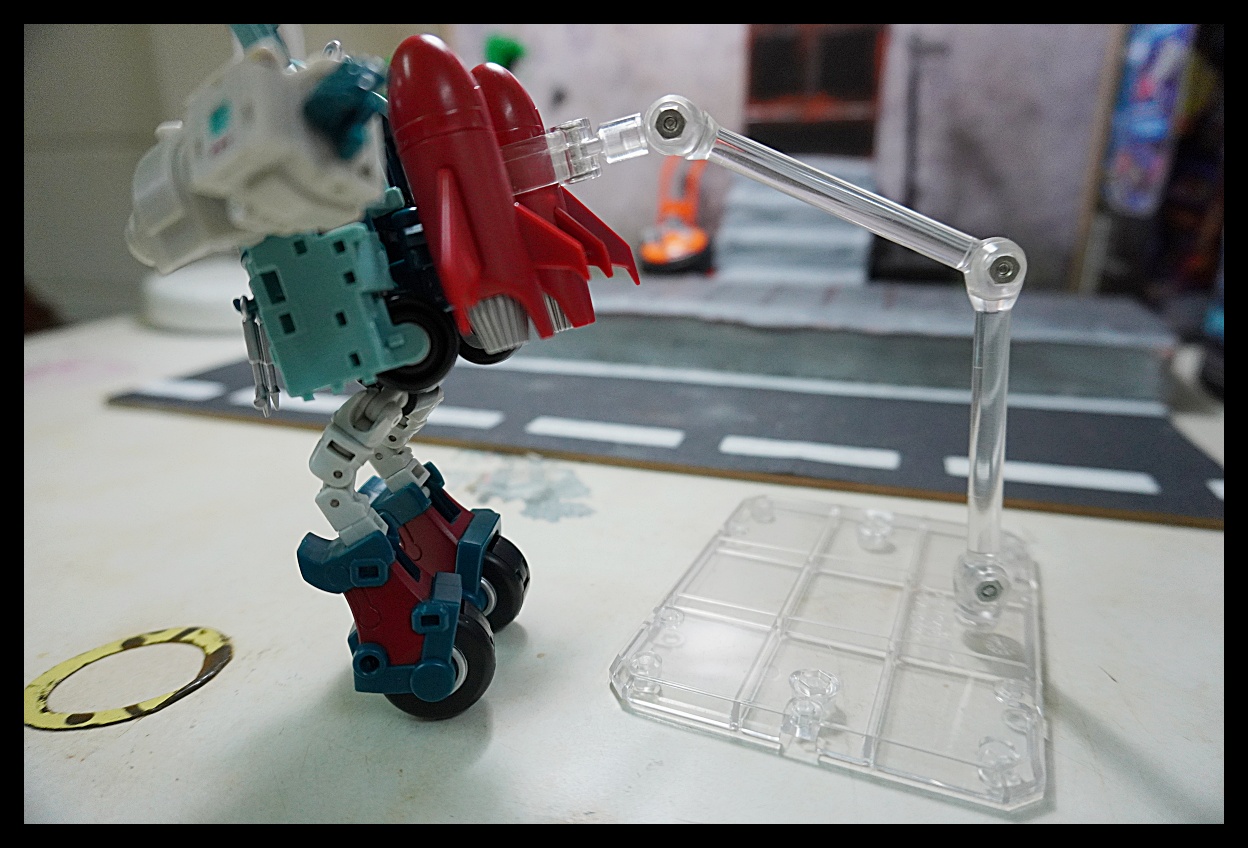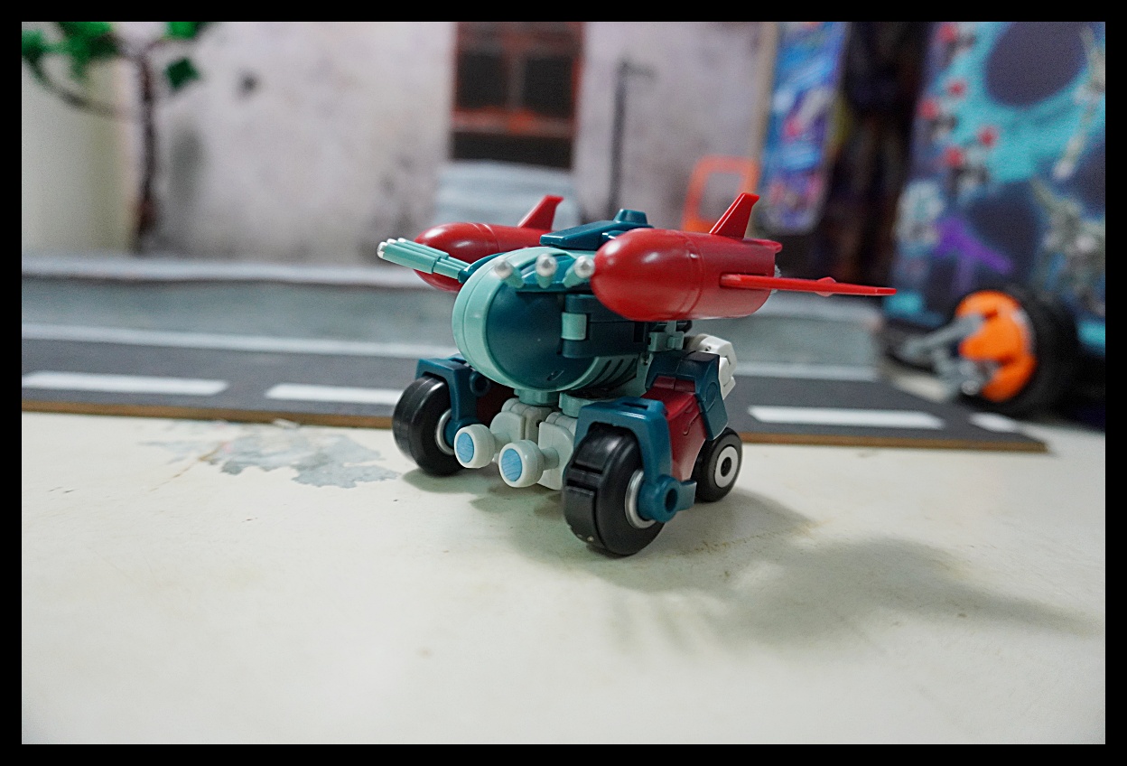 ข้อควรระวังสำหรับตัวนี้คือพลาสติกคล้ายยางที่วงไว้ครับ โดยที่วงสีแดงจะต้องระวังมาก เพราะเวลาแปลงร่าง ถ้าแปลงผิดจะทำให้ชิ้นส่วนงอได้ง่าย ส่วนวงสีชมพูนั้นก็ทำจากพลาสติกคล้ายยางเหมือนกัน แต่เวลาแปลงร่างไม่ต้องไปโดน เลยไว้ใจได้หน่อย