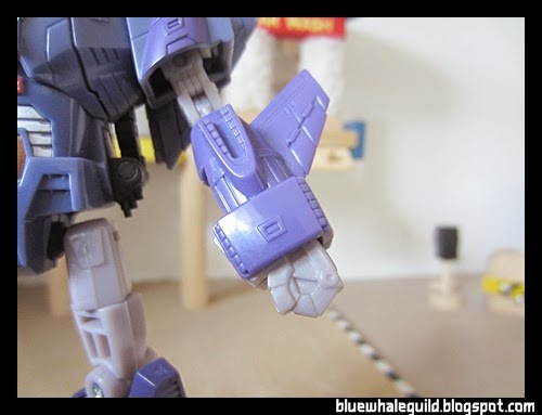 หน้าตาดูแปลกๆ หน้าแก่แต่หูแมว แต่ก็คือเหมือนในการ์ตูน G1 (จริงๆ ก็เช่นเคยที่ผมชอบดีไซน์ของ IDW มากกว่า แต่ตอนที่ซื้อตัวนี้ก็ยังไม่ออกสักทีครับ ล่าสุดมีข่าวว่าค่าย 3rd party นึงจะทำ ก็ดันทำเป็นไซส์จิ๋วอีกครับ) สติกเกอร์ที่หน้าอกเป็นลูกเล่นไปสัมผัสแล้วเปลี่ยนสีได้ครับ