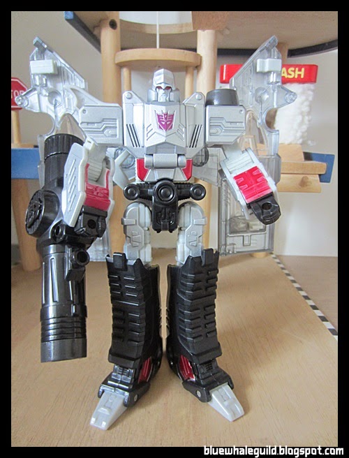 คงไม่ต้องแนะนำอะไรกันมากสำหรับท่านผู้นำของเหล่าร้าย Transformers อย่าง Megatron สำหรับของเล่นขนาด Voyager ชิ้นนี้ก็มีการผลิตออกมาไม่บ่อยนักครับ (ทั้งที่เป็นโมลด์ที่ค่อนข้างโอเคทั้งร่างปืนและร่างหุ่น รวมถึงระบบการแปลงร่าง) โดยเท่าที่ทราบก็มีสามสีได้แก่สีฮาสโบร, เฮนเคย์ และยูไนเต็ด ส่วนตัวแล้วคิดว่าสี United ที่ออกมาหลังสุดก็สวยที่สุดครับ จะเป็นสีที่อ้างอิงจาก Megatron ของการ์ตูนภาค G1 นั่นเอง ตัวที่มารีวิวในครั้งนี้ก็เป็นสี United อย่างที่ว่านี่แหละ งานค่อนข้างหายากแล้วในปัจจุบัน แต่ได้มาเพราะเจ้าของเก่าจะไปซื้องาน 3rd party ที่สวยกว่าครับ  555