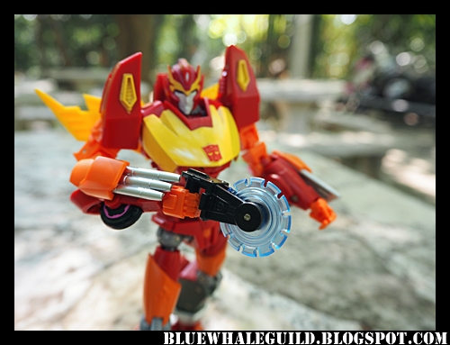 อาวุธมีปืน ดาบคู่ เลื่อย พิเศษคือใบหน้าให้เปลี่ยน ซึ่ง TF เราไม่ค่อยจะมีให้เปลี่ยนกัน